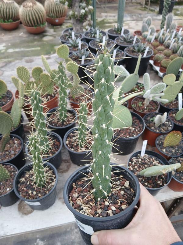 L’Austrocylindropuntia subulata, surnommée « Opuntia à feuilles de alène », s’impose par sa silhouette robuste et sa croissance rapide. Cette plante grasse est originaire des Andes et un excellent porte greffe