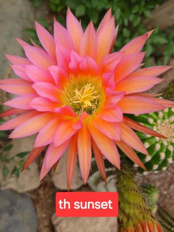 Cactus issue d’hybridation entre plusieurs trichocereus, d’où des couleurs et formes particulières pour les fleurs. Plante très florifère.